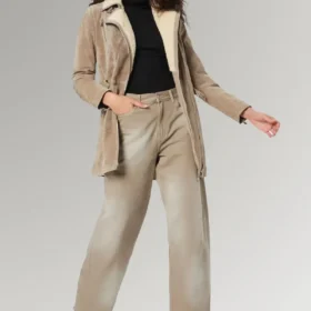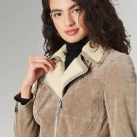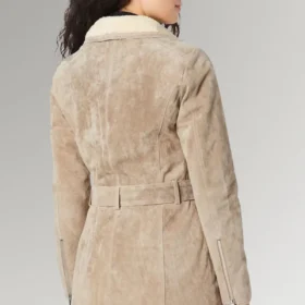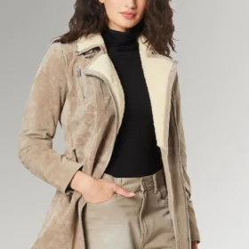 This smooth and versatile Faux Fur Collar Leather Coat is constructed of 100% real suede and has an inside soft viscose lining for enhanced warmth and comfort. This incredibly stylish piece of clothing has been designed with your every requirement already taken care of. It is a mid-thigh length coat that features an asymmetrical zipper front fastening with a buckle belt for a proper fitting, long and fitted sleeves with zipper style cuffs that enhance the elegant look of this jacket. The length of the coat is approximately three quarters of the way down the wearer’s thigh. This Suede Leather Coat comes in a color that is a drab yellowy-brown, which makes it look distinctive and gives it with a delightful appearance.