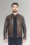 Arnold Men’s Brown Cafe Racer Waxed Leather Jacket