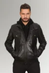 Simmons Men’s Brown Hooded Motorcycle Leather Jacket