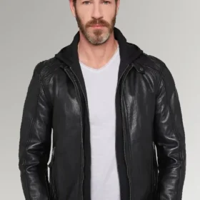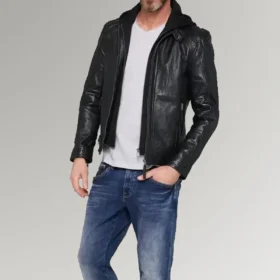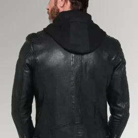 Ortiz Men’s Black Leather Hooded Jacket