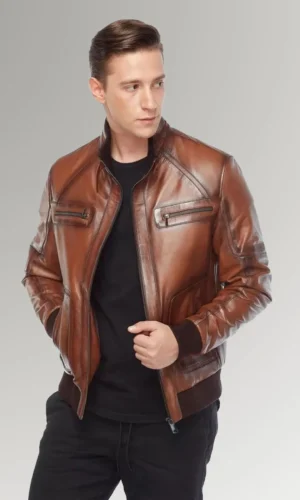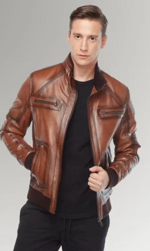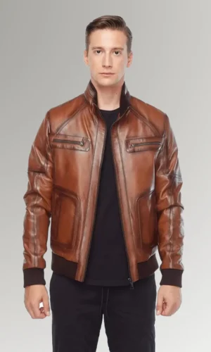 The Patterson Men’s Brown Ripped Bomber Waxed Biker Jacket is an essential item for every man who wants to differentiate himself from the other guys in the room. This bomber jacket, with its one-of-a-kind and fashionable appearance, will give you the edge you need to take on anything that comes your way. The jacket is constructed from high-quality leather, and it has a collar that stands up in addition to a front zipper closure to provide an additional layer of defense against the elements.