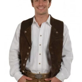 The Perry Cobb Dark Brown Leather Vest Coat is now available. This jacket, which is made entirely of excellent leather, is ideal for any man who wants to be both fashionable and cosy at the same time. The one inside pocket makes it simple to store your necessities, and the front button closure, three outside pockets, and one inside pocket make it simple to reach your items. You will remain warm and cosy all day thanks to the viscose lining.