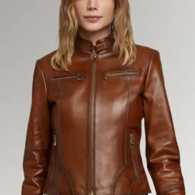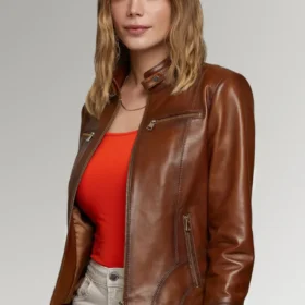 Please welcome the Quinn Women’s Slim Fit Leather Jacket into your wardrobe. This jacket is crafted from high-quality leather and has an upright collar to give it an air of refined sophistication. The four pockets on the exterior of the jacket provide an amazing amount of storage space, and the front zipper closure makes for a more comfortable fit overall. The full-length sleeves will keep you warm on chilly days, and the inside pocket is just the place to store your phone or any other little items you may also need. At the end of the day, the viscose lining will ensure that your apparel maintains its suppleness and comfort throughout the day.