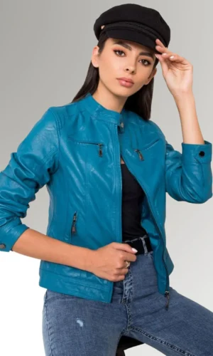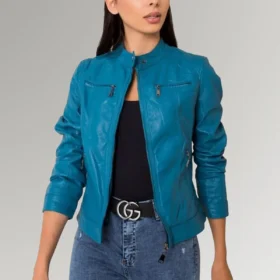 Reid Women’s Blue Cafe Ricer Leather Jacket