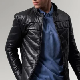 - Men’s Black Leather Jacket in a Holmes-inspired Biker Design.