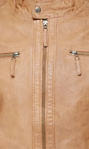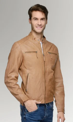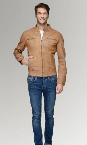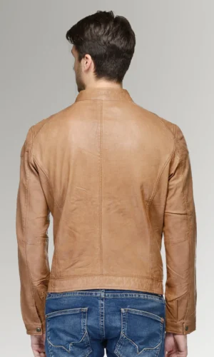 Rodriguez Men’s Brown Waxed Leather Slim Fit Biker Jacket