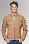 Rodriguez Men’s Brown Waxed Leather Slim Fit Biker Jacket
