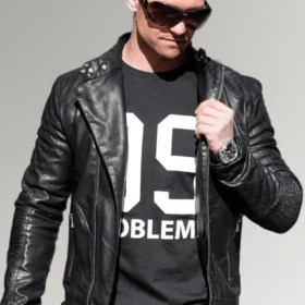 Mitchell Men’s Black Classic Biker Leather Jacket