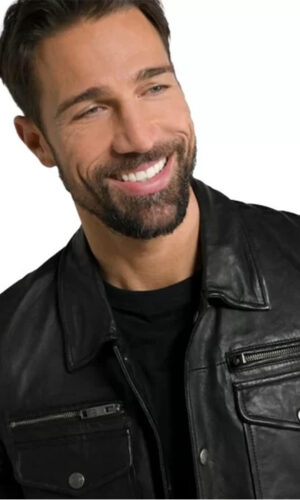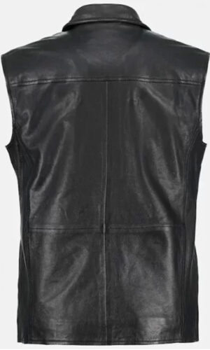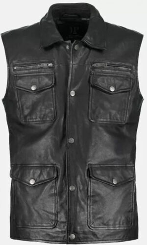 Introducing the ideal addition to any man’s wardrobe: the Ryan Sparks Leather Vest Coat For Men. This vest is ideal for many different occasions thanks to its sleek black leather and front button clasp. It’s the ideal place to store your valuables because it has one inside pocket and six exterior pockets inside. And the best part? Because of the viscose lining, it is cosy and simple to wear. This vest is essential whether you’re hitting the town or the field.