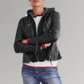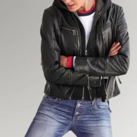 We are excited to introduce the Women’s Samantha Black Hooded Leather Jacket. This jacket is crafted from high-quality leather and features a hooded collar as well as four pockets on the exterior. You may easily store your phone as well as any other small stuff in the pocket located inside. On those chilly days, the full sleeves will keep you warm, and the viscose lining will ensure that your clothing remain comfortable throughout the day.