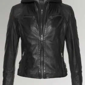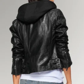 Tags: black leather hooded moto jacket, black leather jacket, black leather jacket with hood, hooded leather jacket, leather, leather hooded jacket, leather jackets, women leather jacket, womens black leather hooded jacket, womens detachable hooded leather jacket, womens hooded leather jacket