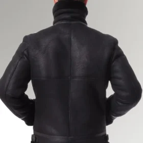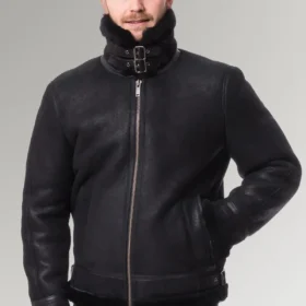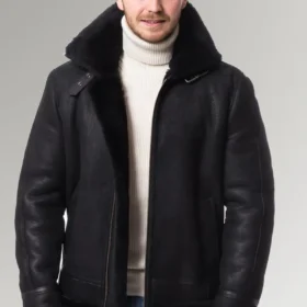 Shane Brick Black Shearling Stand-up Collar B3 bomber leather Jacket is the ideal piece of outerwear for the cold winter months. It is crafted from high-quality leather and has a zipper fastening on the front, making it simple to put on and take off. You have plenty of room for storage thanks to the two pockets on the outside as well as the two pockets on the interior. The interior is lined with sheepskin, which provides additional warmth, and the stand-up collar gives it an elegant and refined appearance.