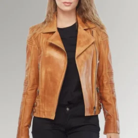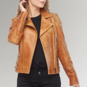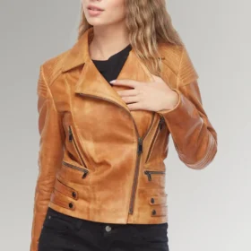 4 reviews for Shaw Women’s Tan Biker Vintage Leather Jacket