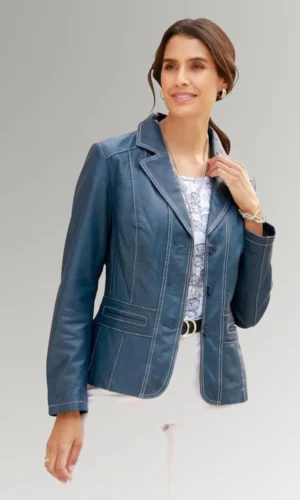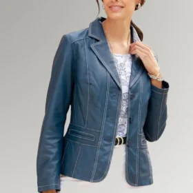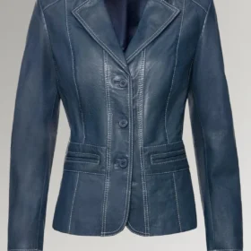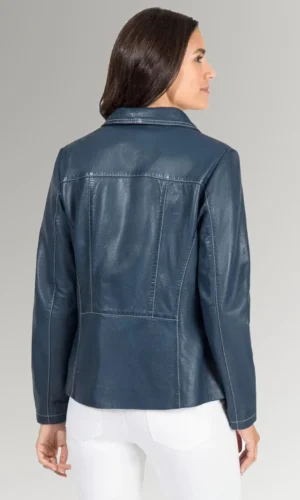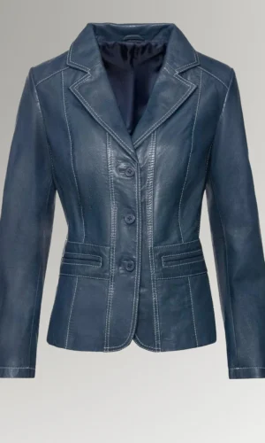 Tamia Ben Blue Women’s Leather Blazer Coat
