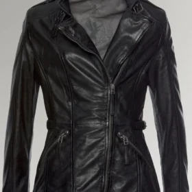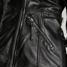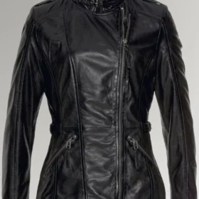 Palmer Women’s Black Side Belted Biker Leather Jacket