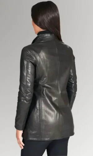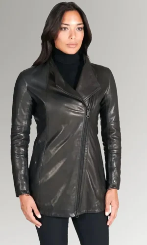 Walsh Women’s Dark Green Hip-Length Biker Leather Jacket