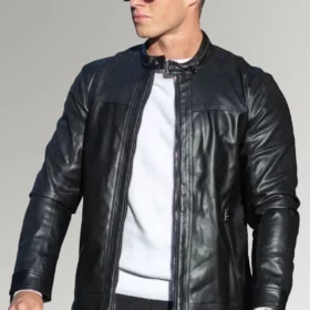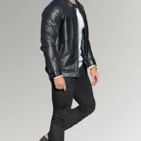 Jeremy Meeks Genuine lambskin viscos lining Leather Jacket in Black